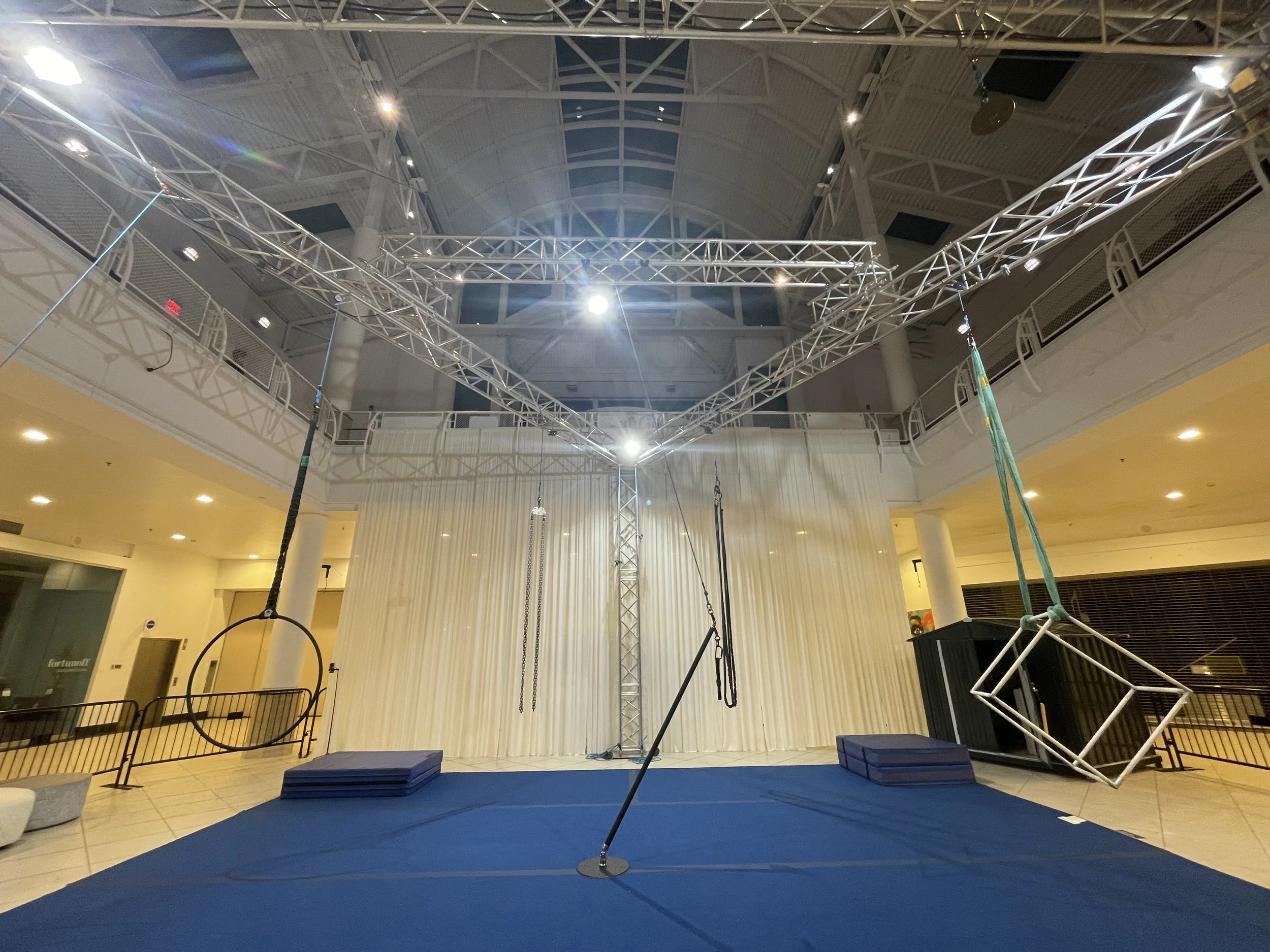Open training time to rig and practice “learned skills” on any apparatus of your choice (Lyra, Silk, Hammock, Single/Dance Trapeze, Double Trapeze, Rope, Spanish Web, Slings, Chains, Cube, Chair, Pole, etc). Must have instructor approval and/or demonstrate prior knowledge of apparatus to train safely without an instructor. Aside from aerials, we provide ground arts instruction in juggling, partner acro, chinese pole, Cyr Wheel, German Wheel, diablo (chinese yo-yo), rolla bolla to name a few.